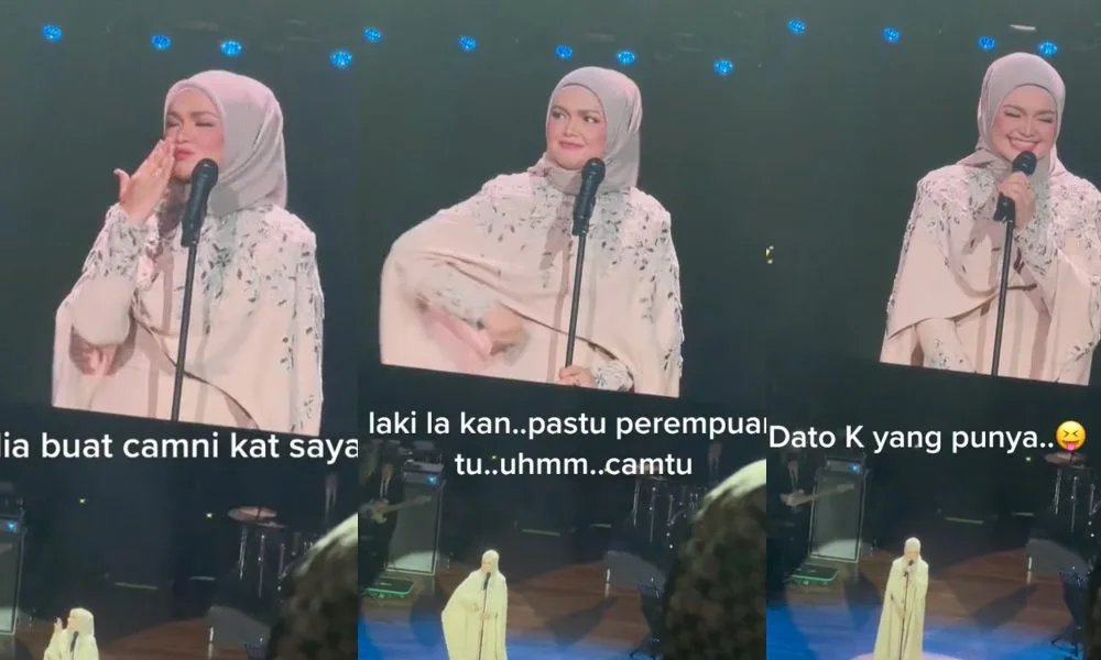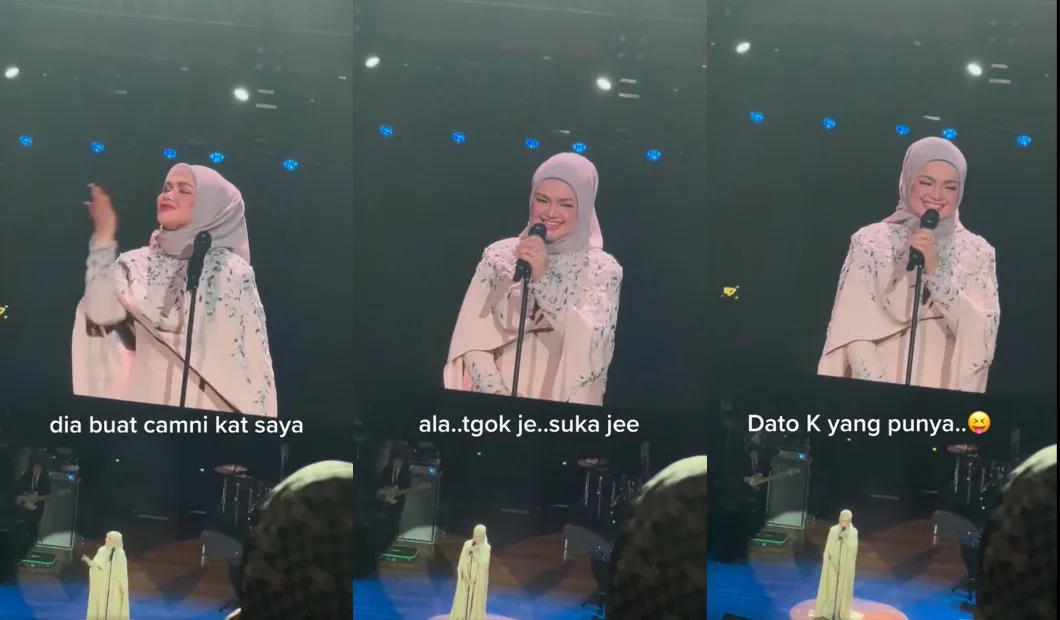 “(The couple) seating right in front of me is so cute. Is she your wife or your girlfriend? The one sitting right next to you, why are you ignoring her? He (the boyfriend) blew me a kiss, and the girl was kind of upset,” Siti said on the stage. She then told couple, “He was only watching me (performing), he’s only a fan. I’m Datuk K’s (significant other).”