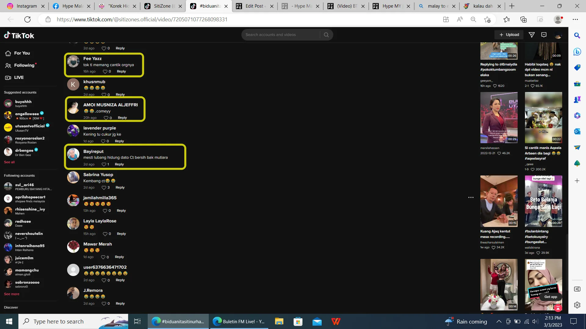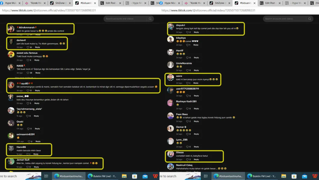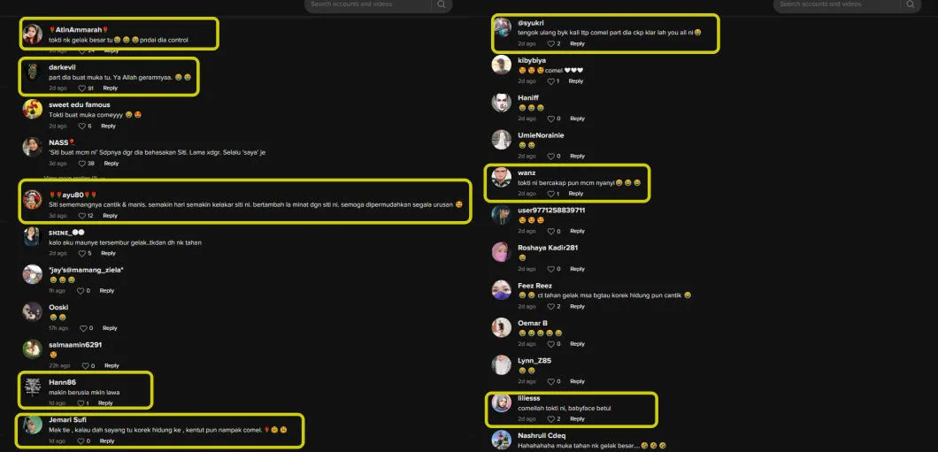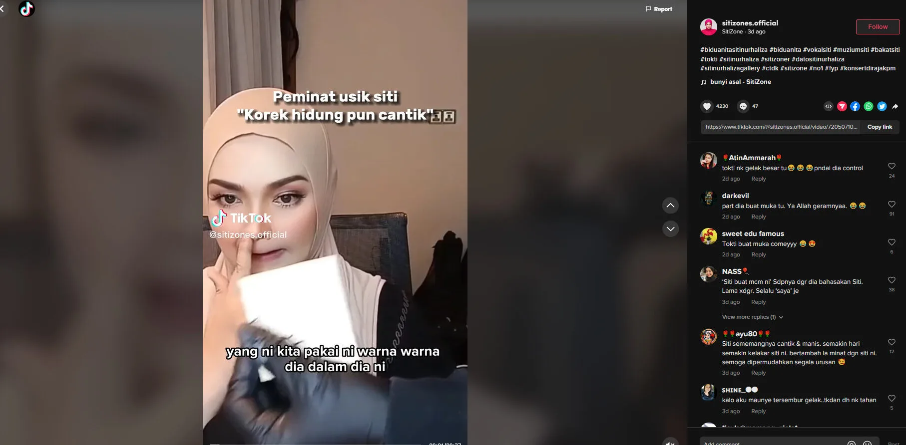 - “Siti was holding back her laughter when the commenter said that she still looks pretty while picking her nose.”