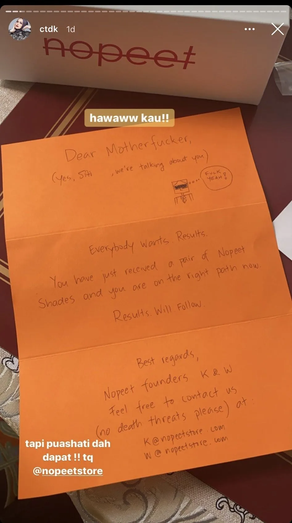 However, based on our findings on its official Instagram page, this Swedish accessory brand has been using the same note as a token of gratitude to customers for purchasing their stuff. No wonder they weren’t really familiar about Siti.