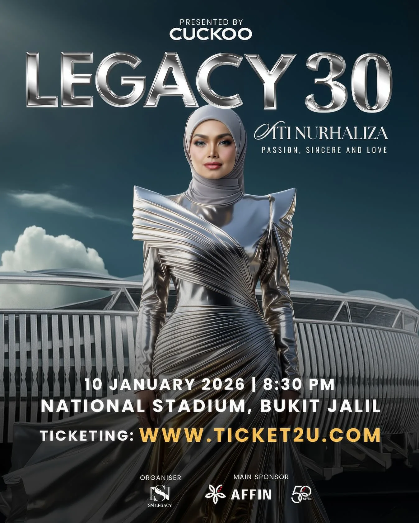 Since the weekend, Siti Nurhaliza has been teasing fans with hints of something special by posting a photo of the number 30 adorned with a crown, suggesting a celebration of her 30 years in the music industry. Last night, the icon officially announced that she will hold her 30th anniversary concert, titled “Legacy 30”, at the Bukit Jalil National Stadium next year.