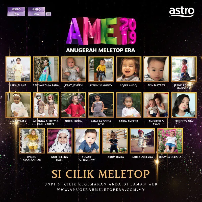 Astro’s annual award ceremony Anugerah MeleTOP Era (AME 2019) has listed out the nominees for several categories including Si Cilik MeleTOP category which basically means the cutest celebrity baby in Malaysia.
