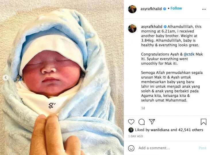 Siti Nurhaliza’s stepson, Asyraf Khalid, was recently called out by a die-hard fan of the singer on Twitter after he shared a photo of her newborn son‘s face on his Instagram.