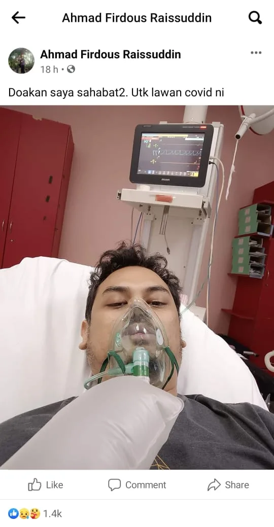 Apart from Ahmad Firdous, his wife was also confirmed positive for Covid-19. Thankfully, the two children in the family were reportedly free of the virus. The news was confirmed by Ahmad Firdous through his latest post on Facebook.  Ahmad Firdous was immediately rushed to the hospital after his oxygen dropped to 94%. He is reported to be in a stable condition.