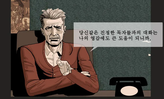 The “Interview” webtoon is about a fiction author who is experiencing a slump and refuses to have an interview with anyone. However, he does permit one man, who unexpectedly knows about his unpublished project, “Hungarian Barber”, for an interview. And then, the story unfolds.