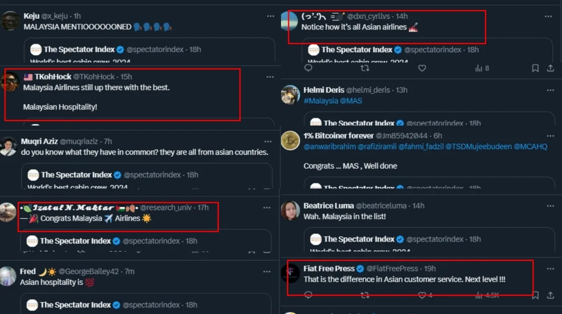 Our country is right below Qatar Airways at number nine and right above South Korea’s Asiana Airlines at number eleven. The World’s Best Cabin Crew 2024 list was then reshared on Twitter where many expressed their opinions on the ranking. Surprisingly, Malaysians were not upset by the results, with some expressing their satisfaction at being listed in the Top 10. Others pointed out that most, if not all, of the airlines listed in the Top 10 were from Asian countries, with many claiming that they prioritise service and excellence over those from Western countries.