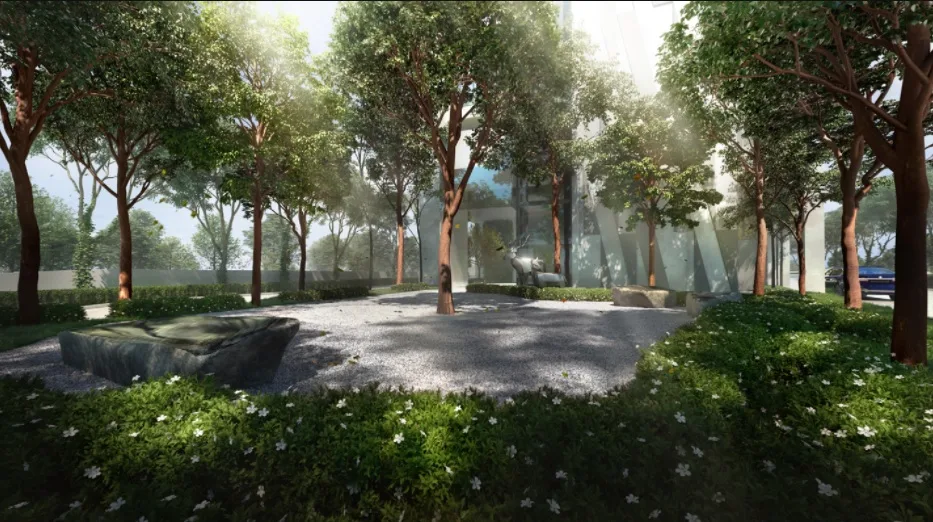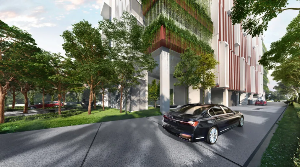 The distinct V-shape on the front, combined with sleek curves and layers, give the structure a sharp look to keep you postured up on your feet. Besides, creepers droop over, allowing for natural dissipation of heat from the vehicle parking podiums. It’s such a lovely and welcoming hug from home.
