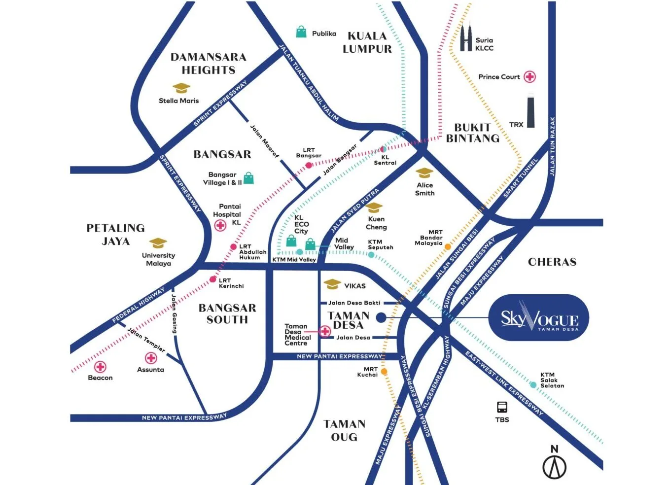 Let’s take a look at some digits. First up is… wait for it… Mid Valley Megamall?! Oh yes. This legendary hub of entertainment, lifestyle, and business is only 2 KM away! The pulsing roar of Bangsar comes next at 3 KM, followed by the sky shattering buildings of KL City 5 KM away. Now, if you have a job within the heart of the town, say the financial districts in KL Sentral or the TRX, SkyVogue Residences @ Taman Desa is truly the jackpot.