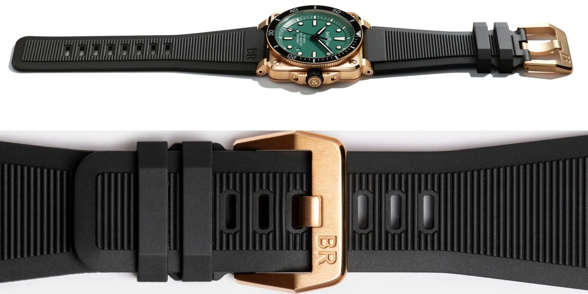 Owning a bronze watch means accepting that it will change its appearance. BR 03-92 Diver Black & Green Bronze is the watch that grows and changes depending on the user’s lifestyle; they have the option of letting it evolve with the sea breeze and letting it take on that brown-green look, or polishing it to a golden mirror shine.