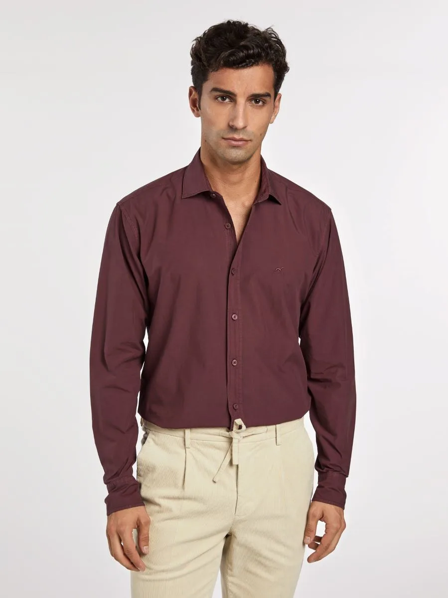 Available in a deep bordeaux shade, the Men’s Slim Fit Comfort Shirt, crafted from 100% cotton, has an open spread collar and a front button-up fastening that can easily take you from morning celebrations to night time parties.