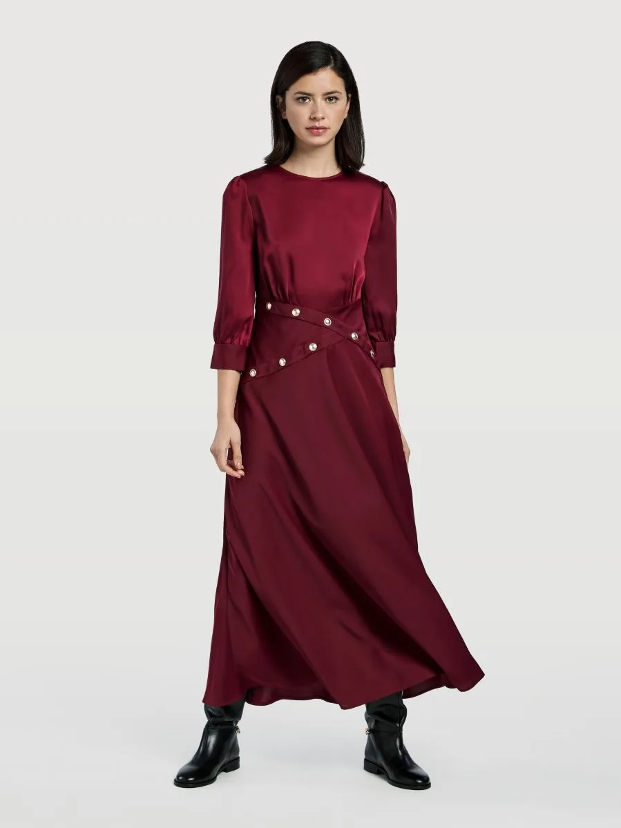The relaxed fit and flowy fabric of the Midi Flowing Dress make an ideal choice for reunion dinners, embracing both elegance and comfort. The ornate buttons on the front elevate its charm, introducing a touch of sophistication reminiscent of traditional Chinese New Year attire. The 3/4 cuffed sleeves and the invisible zip fastening at the back add a layer of refinement to this exquisite piece.