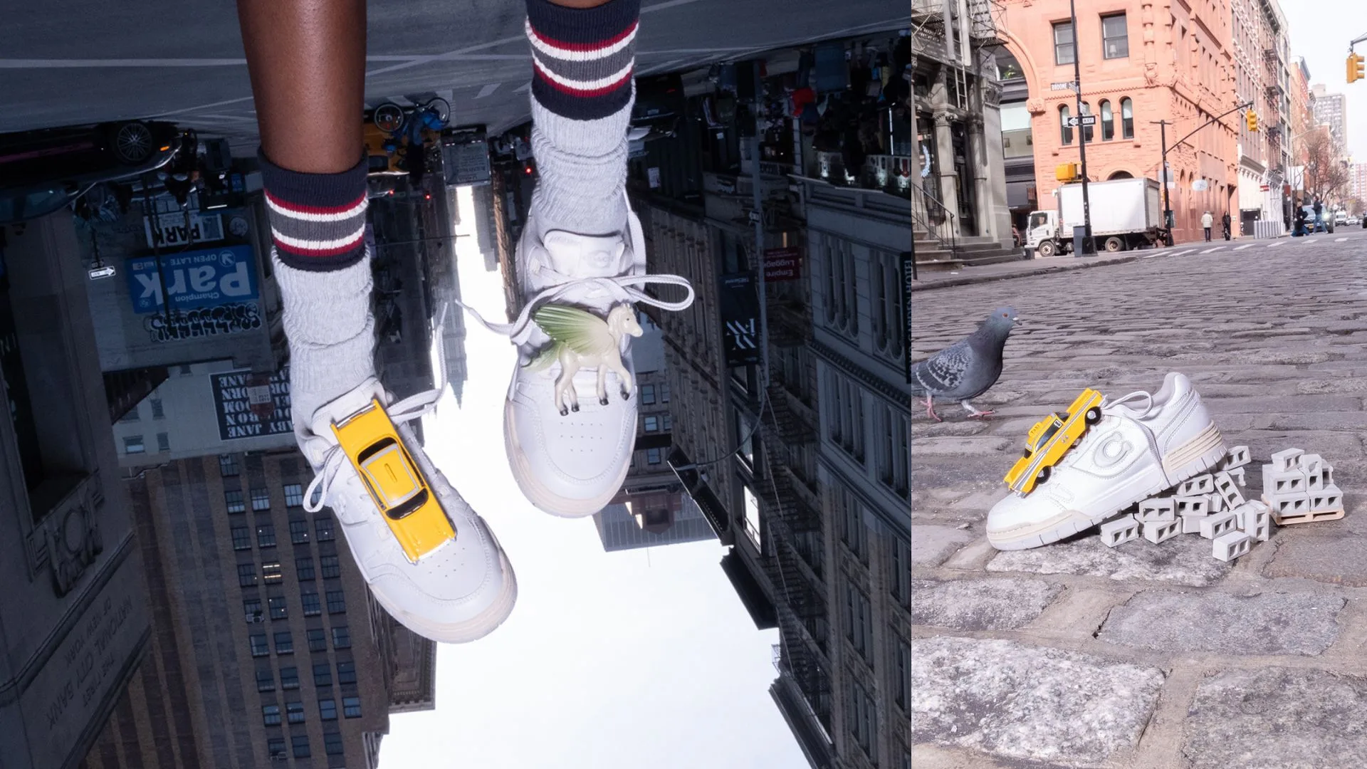 Paying playful homage to Coach’s hometown of New York City, the sneaker also features a map of Manhattan integrated in the tread of the outsole, with the Coach logo marking the house’s Hudson Yards headquarters. As featured on the runway, a series of fun and vibrant resin charms depicting iconic New York City and ‘90s-inspired imagery such as taxi cabs, dice, and other whimsical designs will be available to shop, allowing wearers to make the shoe uniquely their own.