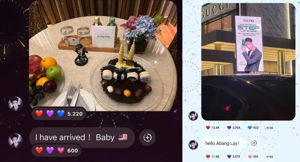 Besides dining at Jalan Alor, fans also noted that Lay has been actively sharing about his KL trip online. Upon reaching his hotel, the singer posted the welcome spread prepared by the hotel and his concert organiser, InTour Live. He also excitedly shared a photo of his advertisement billboard that he spotted in Bukit Bintang, cheekily captioning it with “Hello Abang Lay (Hello brother Lay)”. Funnily enough, some fans also brought up the puzzling coincidence that it always rains when an EXO member is in town since it also poured the last time the 33-year-old was here.