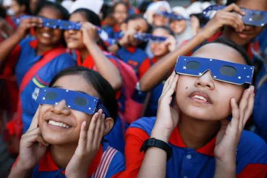 Despite the cloudy skies, locals and commuters who raised their eyes to the sky were able to witness the first contact occurred as the moon sliced of part of the sun. The schoolchildren from SK Convent Bukit Nanas were also given the opportunity to witness this rare phenomenon as part of their science project.