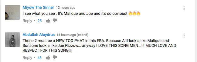 It seems pretty “obvious” (pun intended) that the two artistes are paying homage to the iconic rap duo in their music video. Fans even spotted that SonaOne and Alif even wore outfits that were previously worn by Joe and Malique.