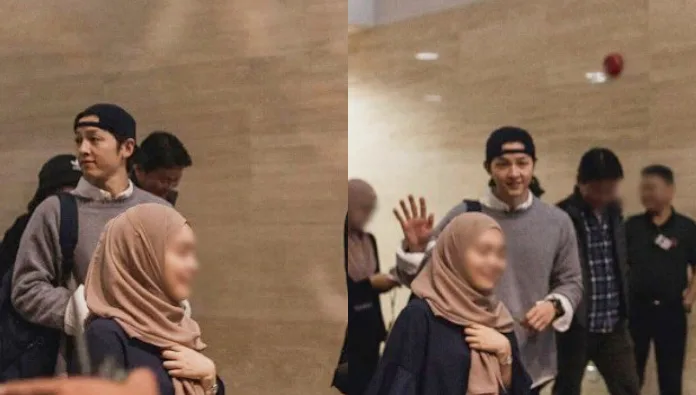The 33-year-old actor, who is well known for his role in “Descendents of the Sun”, is currently in Brunei to shoot the upcoming tvN drama “Asadal Chronicles” (working title). He was seen wearing a black cap and grey long sleeve sweater as he waved to excited fans.