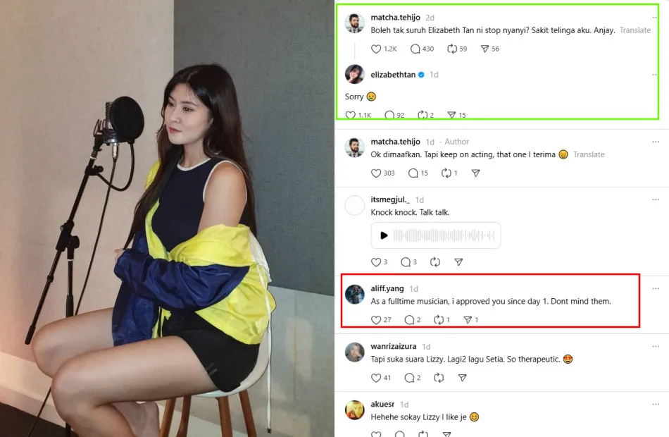 Earlier this week, a Threads user going by @/matcha.tehijo expressed frustration over Elizabeth Tan’s singing, writing: “Can someone tell Elizabeth Tan to stop singing? Hurts my ears, goddammit.” As seen in the screenshots above, he didn’t tag the artist and was simply sharing his opinion. However, much to everyone’s surprise, the 31-year-old, fondly known as Lizzy, responded to the post with a simple: “Sorry 😢”.