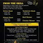 That’s not all. The menu also offers a wide selection of sides and special sauces. You can enjoy your grilled meat with baby spinach, tomato cucumber salad, mixed mushrooms, garlic mash, Belgian fries, herb rice, garden salad, or parmesan broccoli.