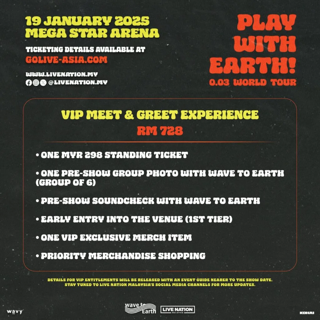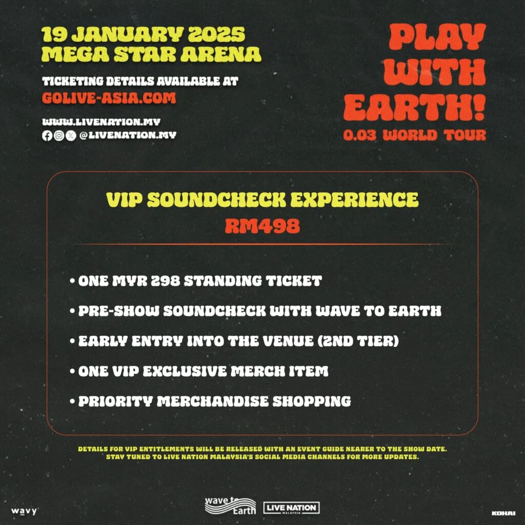 For more information on the concert and ticketing, you can contact Live Nation Malaysia, GoLive Asia and Kohai Tours. Are you ready to rock out with Wave To Earth?