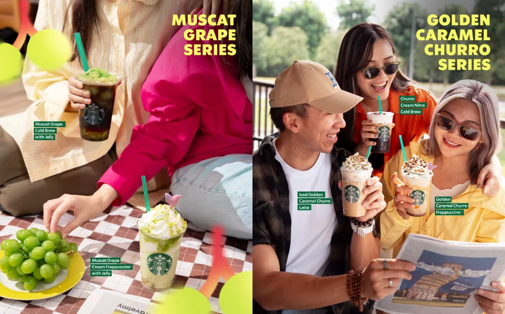 - Starbucks Muscat Grape Cream Frappuccino Blended Beverage with Jelly (RM19.00): a refreshing mix of icy sweetness and real green grape pieces. Infused with the floral aroma of muscat grapes, this fruity drink features grape jelly, creamy vanilla whipped topping, and a drizzle of muscat grape syrup for a bright, uplifting finish.