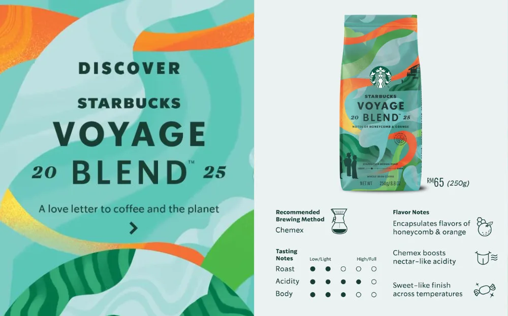 And finally, wrap up your summer journey with STARBUCKS Voyage Blend™ 2025 (RM65.00)—a unique coffee created to honour the spirit of discovery and connection. Blending the sweetness of Ugandan beans, the deep richness of beans from Timor-Leste, and the vibrant herbal notes of Colombian beans, this brew delivers a smooth, layered flavour. Perfect for savouring during quiet mornings or winding down after a long day, it’s a flavorful way to reflect on the season’s adventures.