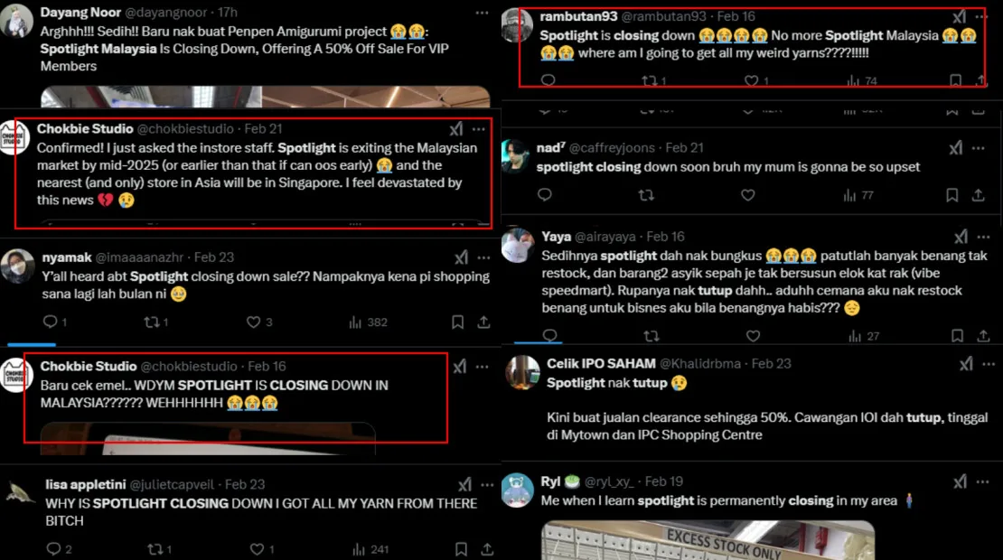 Although the retailer did not specify the closure date, staff confirmed that the stores will close either in June or July, according to customers who inquired in person. Shortly after the news spread across social media, many were devastated to learn that Spotlight would no longer be operating in Malaysia. Some also noted that the brand will continue to operate as usual in the neighbouring country, Singapore.