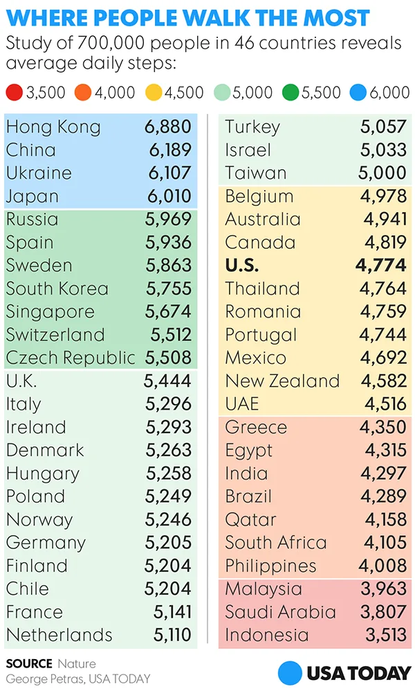 Standford researchers also noted that people typically walked a similar amount every day in countries with less obesity. However, there were larger gaps between those who walked a lot and those who walked very little in nations with higher rates of obesity.
