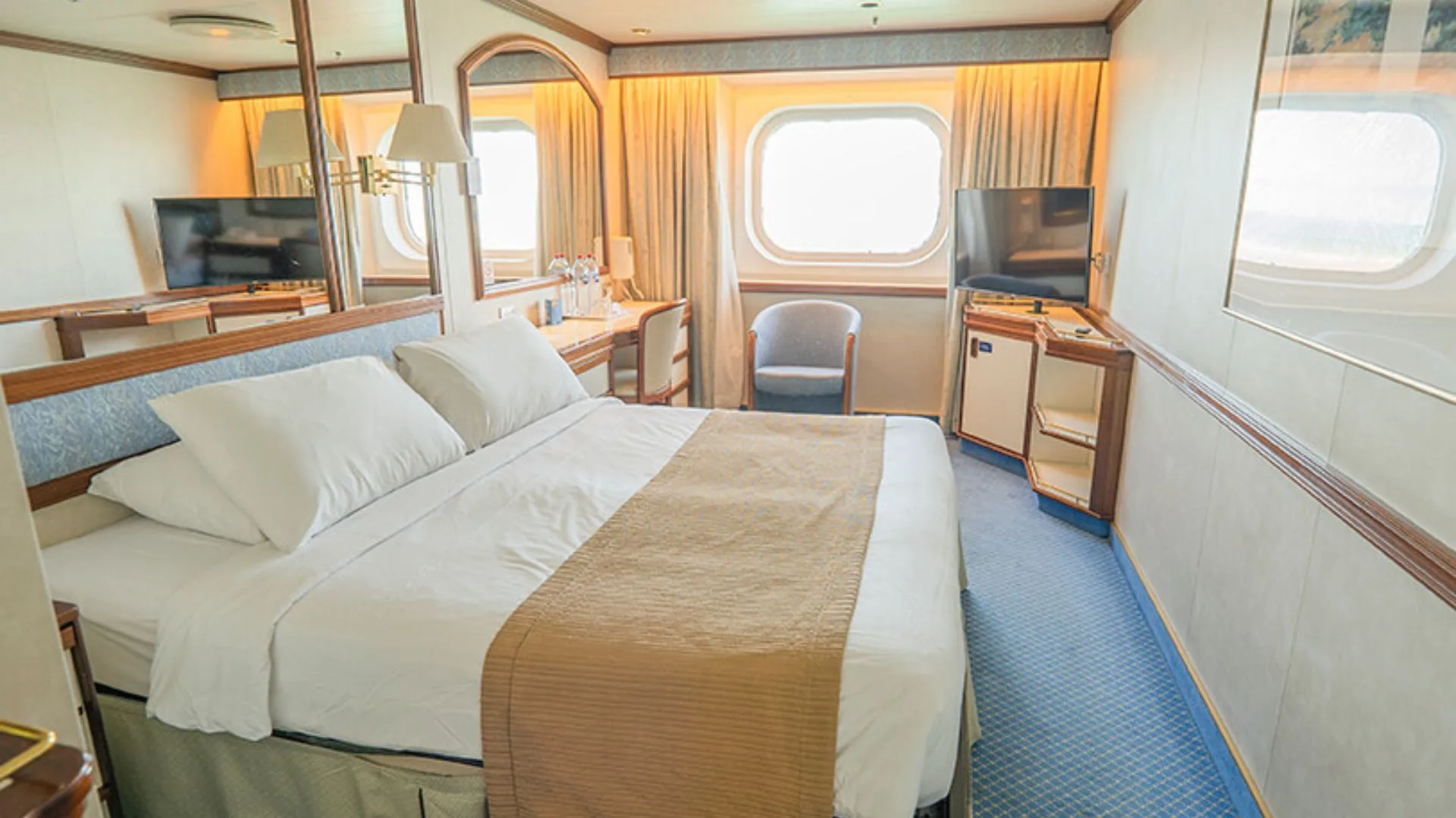 In between destinations, the ship will be your ‘home’ for three nights with an abundance of chances to experience new things while at sea. Relax in the comfort of your own cabin with options ranging from Interior, Oceanview, and Balcony staterooms, to the opulent Palace Suites, complete with exclusive access to private facilities, 24-hour butler service, and bespoke experiences.