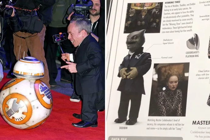 Warwick Davis played another Canto Bight alien called Wodibin. In case you didn’t know, Davis previously portrayed Wicket the Ewok in “Return of the Jedi” and was also involved in “The Phantom Menace”.