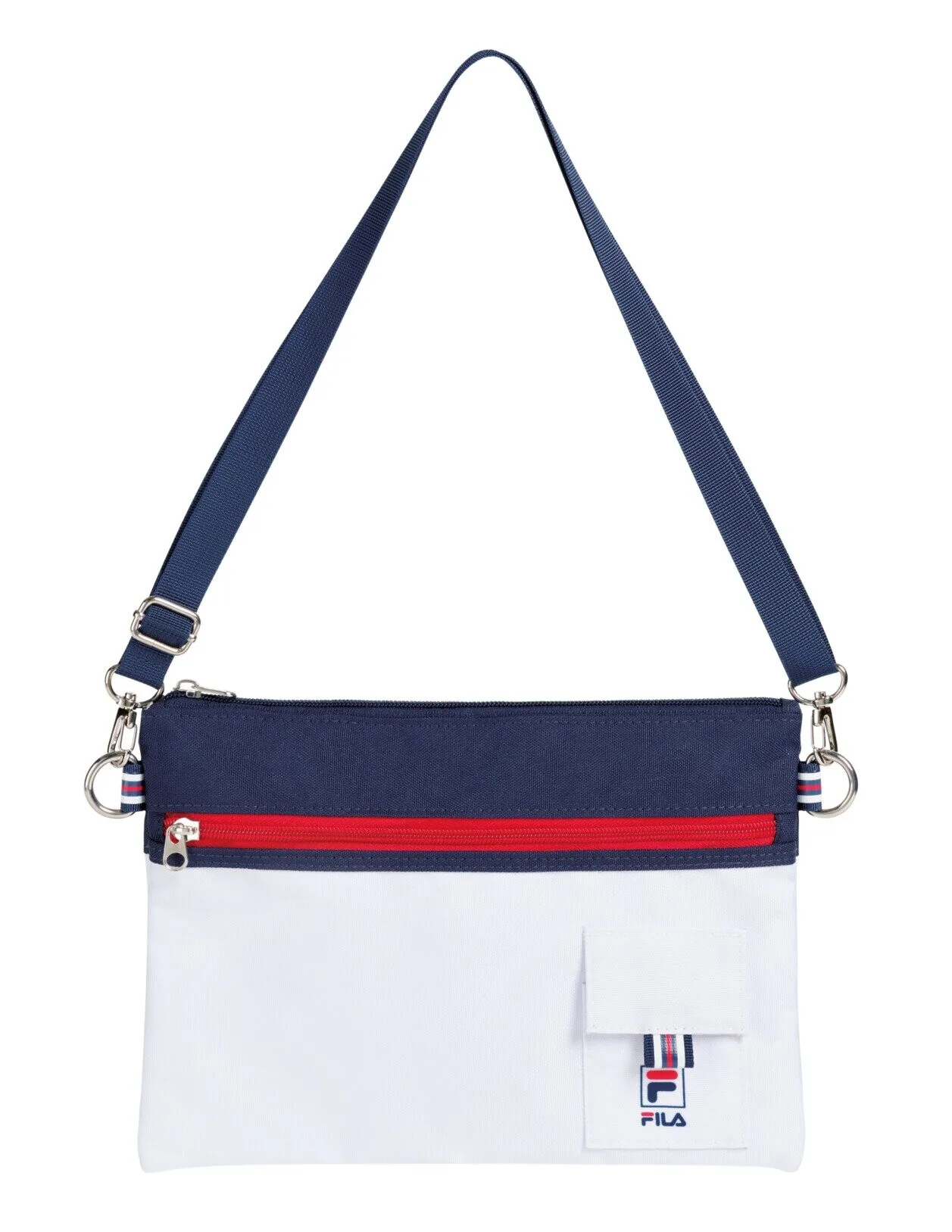 - FILA branded tabs for cross body hardware attachment.