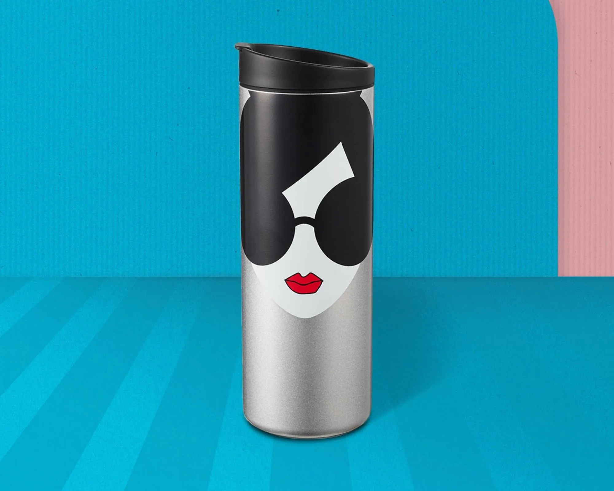 This is double-wall constructed with flat-white paint and an opaque black lid which uses a slide open/close function for convenient usage, in two designs to choose from, the “Rainbow Stace Squad” and “Iconic Stace Face”.