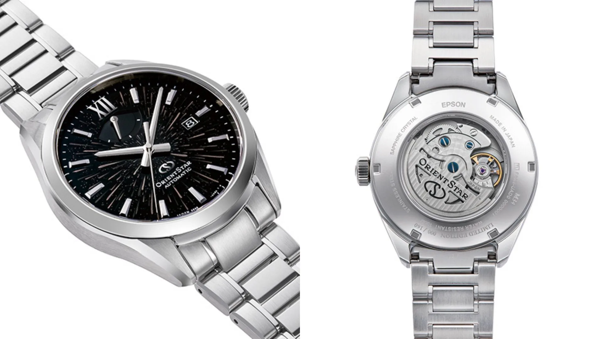 Orient Star has released two new M34 F8 Date models from the Contemporary Collection M34, featuring dial designs inspired by the Perseid meteor shower and a state-of-the-art high-performance movement mounted with a silicon escape wheel.