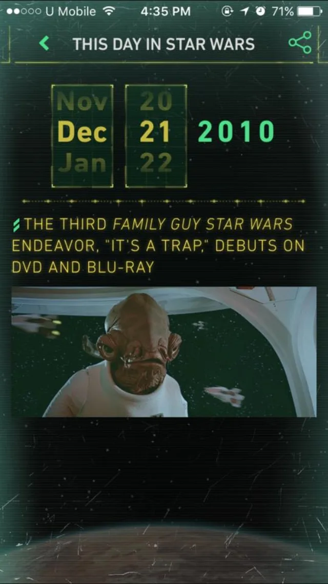 Fans can transform into a “walking encyclopedia” as they discover behind-the-scenes fun facts with “This Day In Star Wars History” feature in the app.