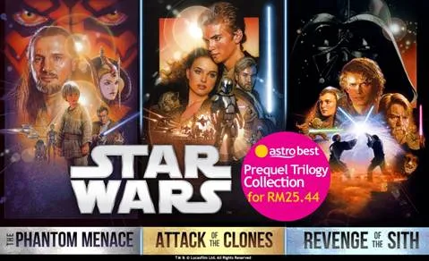 The prequel collection will include “Star Wars Episode One: The Phantom Menance”, “Episode Two: Attack Of The Clones” and “Episode Three: Revenge Of The Sith” and the full collection is now available for purchase at the price of RM 25.44 (GST included) via Astro Channel 481 or at the official website.