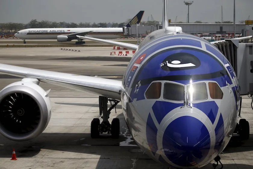 In April this year, it was announced that ANA will paint one if its brand-new Boeing 787s with an R2D2 motif in honour of the iconic sci-fi film series.