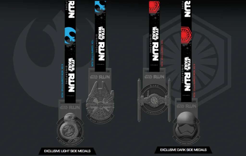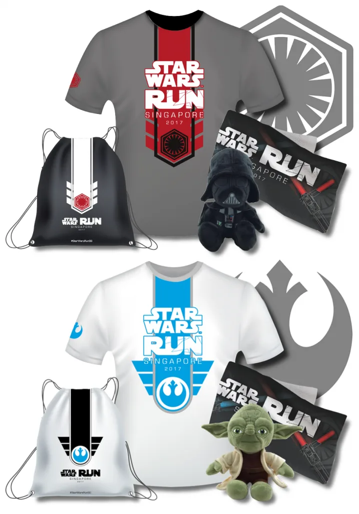For the 4.5km non-competitive run, participants can choose to run on either the Dark Side thematic route or on the Light Side. Both sides come with an exclusive run pack which includes a Darth Vader plushie for the Dark Side participants and a Yoda plushie for the Light Side participants. Upon completion, participants will also be given a medal unique to each “side”.