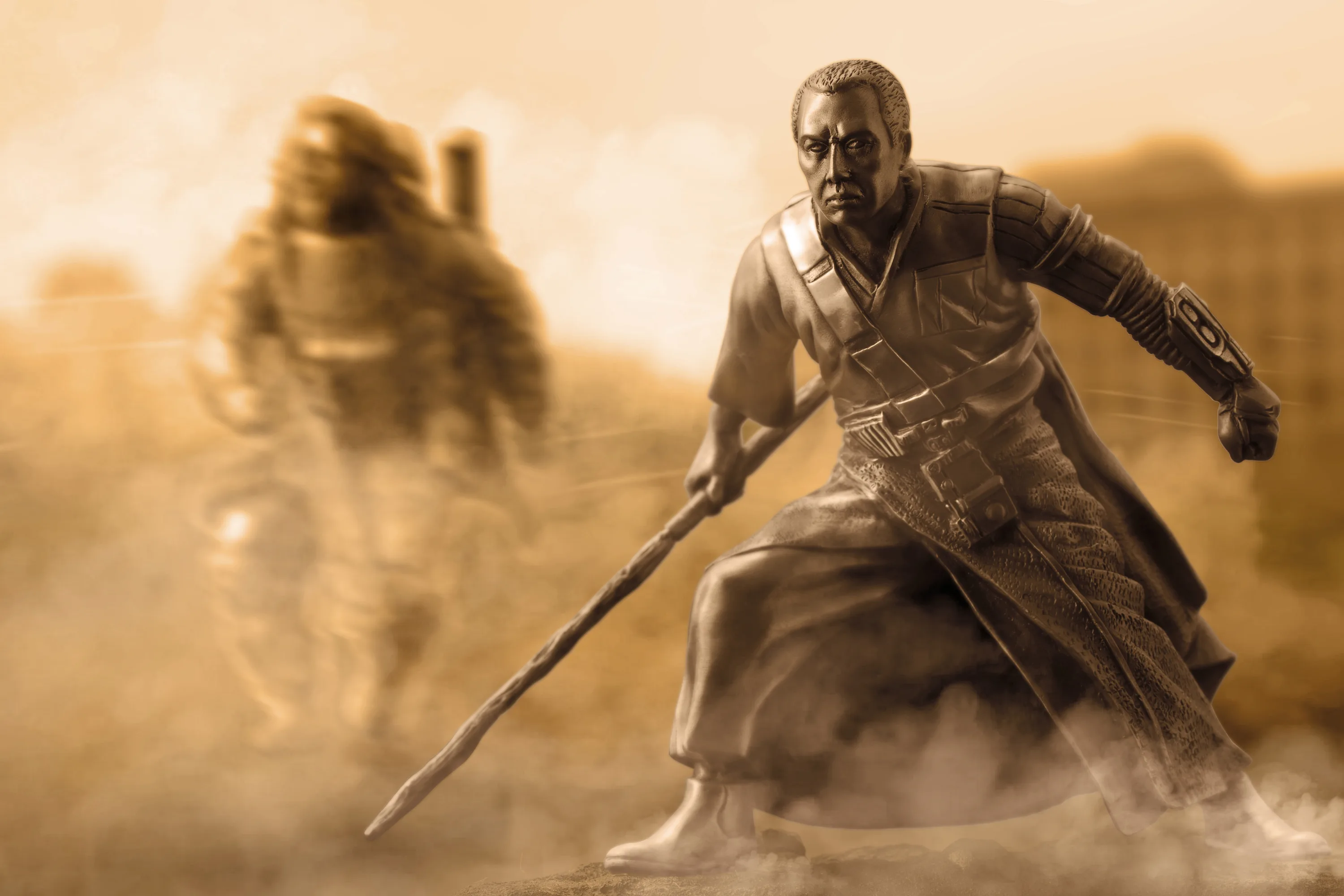 The Limited Edition figurines of Chirrut Îmwe, the blind warrior monk and Baze Malbus, his hard-bitten soldier friend headline the additional collectibles. Portrayed in a fighting stance, Chirrut’s tense expression and true-to-movie costume details is perfectly captured.