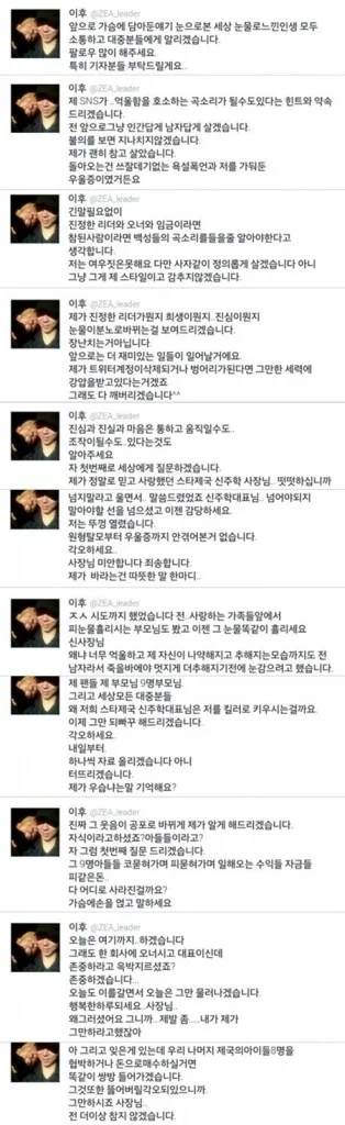 “In future, for the sake of everyone that has read all my messages, as the representative of the singing, dancing, variety show ZE:A, along with my seniors, colleagues, juniors and all the artists, I vow on my changed name ‘Lee Hoo’ and ZE:A that I will dare to continue to work and live extremely hard.”