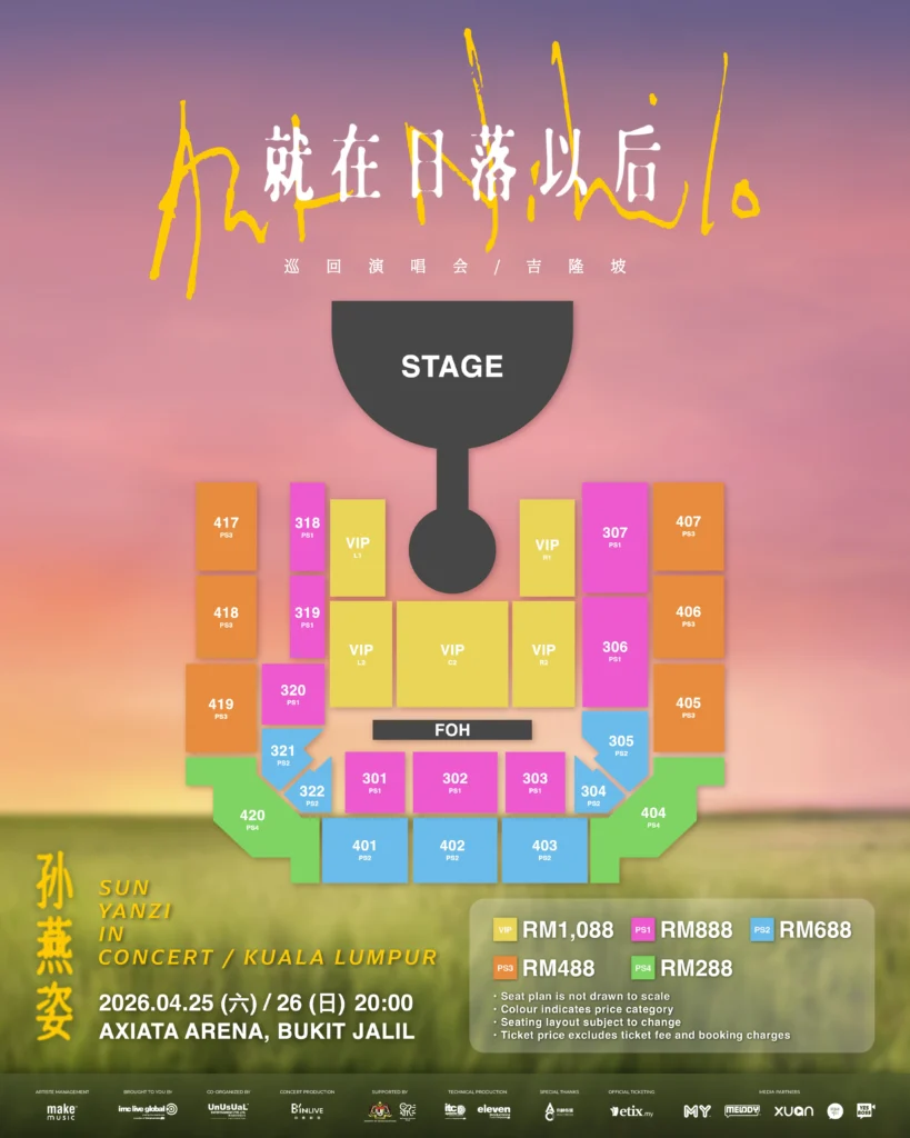 - Ticket Prices: VIP: RM1,088, PS1: RM888, PS2: RM688, PS3: RM488, PS4: RM288