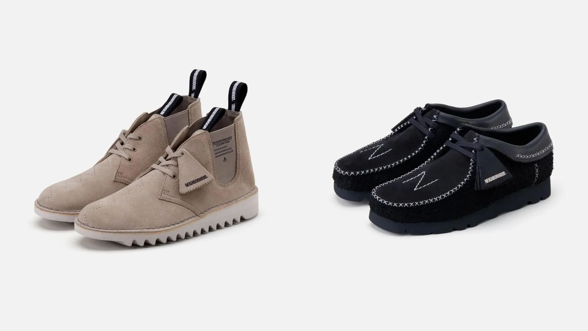NEIGHBORHOOD and Clarks Originals have been collaborating and creating iconic designs for decades. The two brands have once again joined forces to reimagine their most iconic footwear – the Wallabee and the Desert Boot.