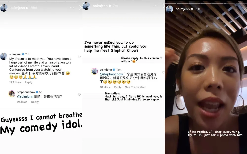 While Jenn Chia (aka soimjenn) didn’t receive one, she might have gotten a better deal. The popular and humorous influencer apparently left a comment on Stephen Chow’s post, saying it was her dream to meet him. “You’ve been a huge part of my life and an inspiration to a lot of videos I create. I even learnt Cantonese from watching your movies. (Mr. Chow), when can (I) meet my idol?” she wrote.