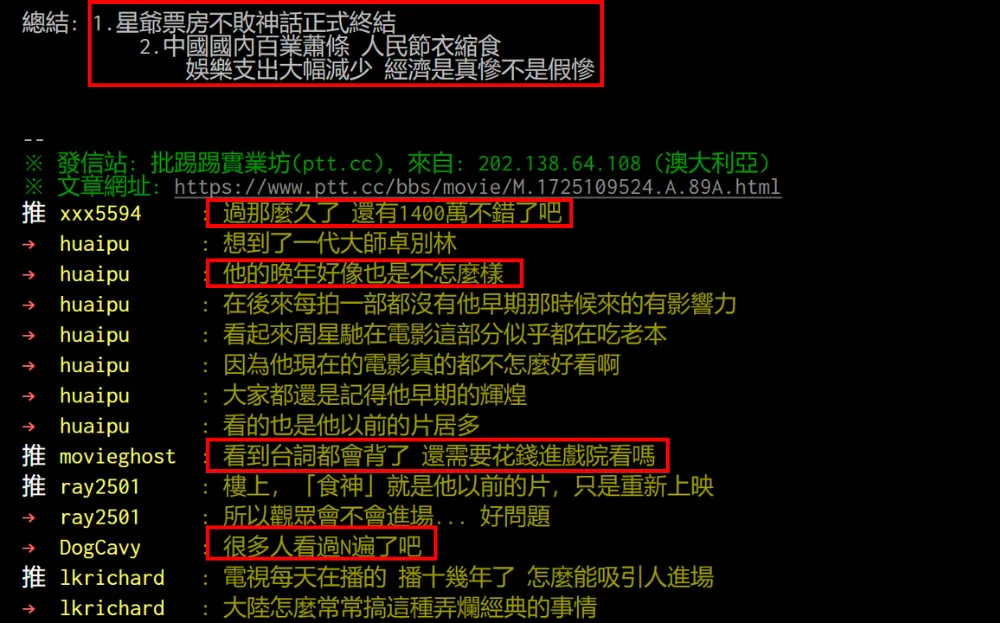 As the film couldn’t break into the top 10 box office for opening weekend, many Chinese netizens discussed whether this shows a decline in Stephen Chow’s popularity. One netizen posted on an online forum, writing, “Stephen Chow has officially stepped down from the altar”. In the comments, some netizens lamented the 62-year-old is no longer the hitmaker he once was, noting that his recent releases haven’t been doing well.