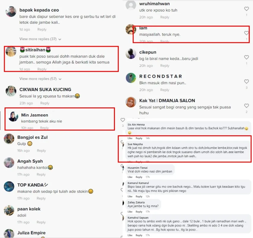The cooked food packages were placed in the washing machine while the raw materials were kept in a plastic basin next to the toilet bowl. The third video garnered the most attention with over 1 million views, 27k likes, and 1.8k comments. Netizens all commented on the revolting sights of where the food were being kept.