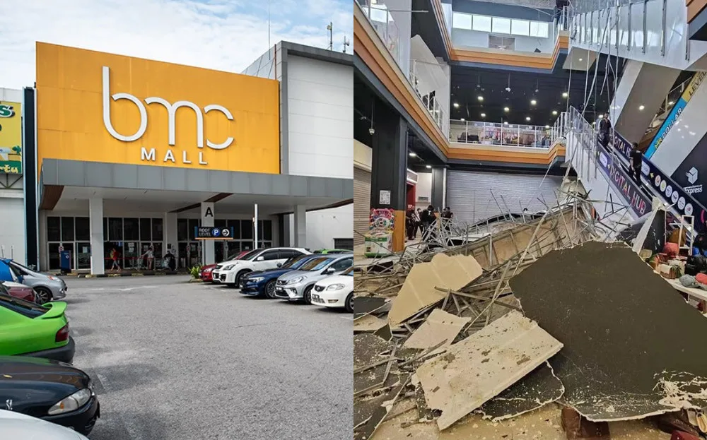 Shoppers and tenants at BMC Mall in Bandar Mahkota Cheras,  were left shocked after the mall’s ceiling suddenly collapsed earlier today. Reports say that the incident at the three-storey mall occurred earlier today, around noon.