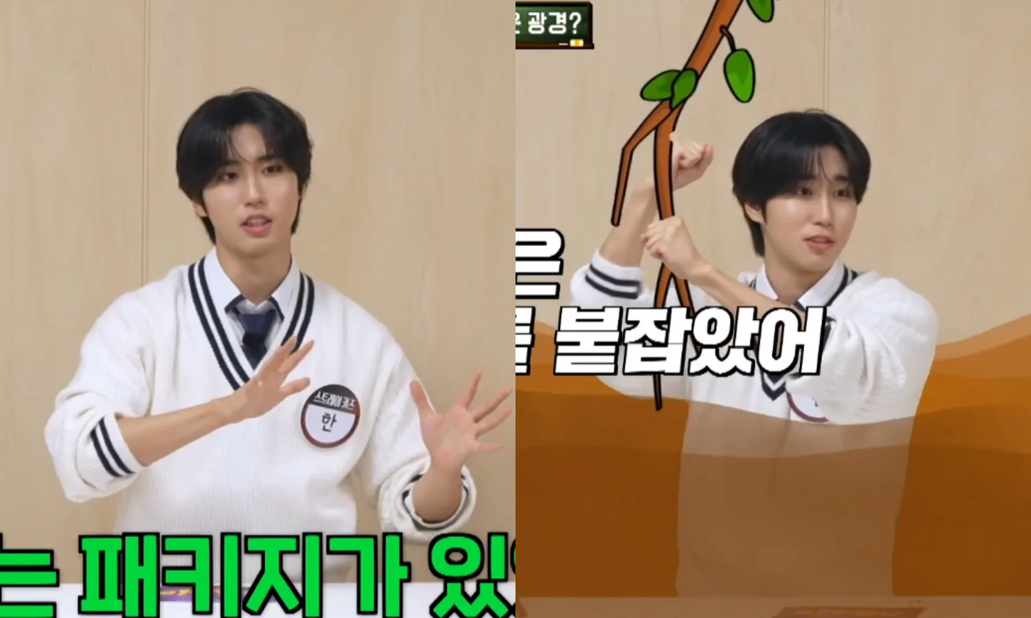As the cast and other Stray Kids’ members attempted to guess, one of the main cast members got close by mentioning crocodiles. After more clues, Hyunjin (현진) came even closer, guessing, “It rained, so you slipped. When you opened your eyes, there was a group of crocodiles.”