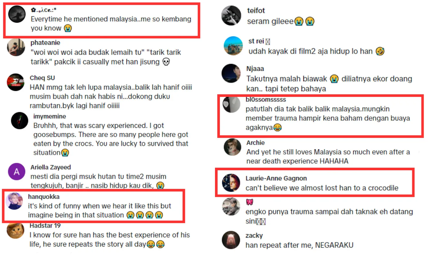 Many STAYs felt bad for Han, expressing how unfortunate it was for him to have gone through such a life-threatening experience at such a young age, while others were overjoyed that he once again mentioned Malaysia on camera. Some fans also jokingly commented that the reason Stray Kids have yet to visit Malaysia is that Han might still be traumatised by the crocodile incident.