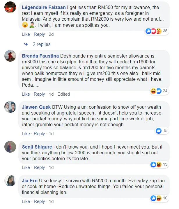 A university student posted on Facebook asking for advice on ways to save money because apparently, RM2,000 of monthly allowance isn’t enough for the person.