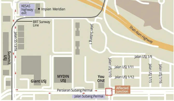 The partial road closure will affect more than 8,000 Subang Jaya residents, who are advised by Subang Jaya assemblyman Hannah Yeoh to make a detour via Jalan Subang 3 or Jalan Subang 2 to get to Jalan Subang Permai.