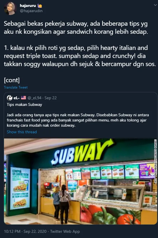Luckily, Twitter user @hajaarudin, a former sandwich maker for the fast food chain, has revealed the best combinations to make your sandwich more appetising.
