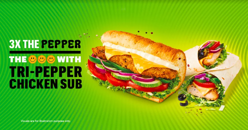 - Tri-Pepper Chicken Sub starts from RM12.60* for a 6-inch and RM20.95* for a footlong