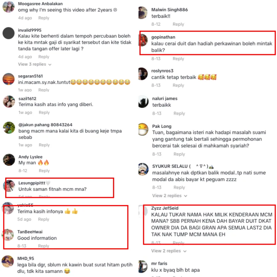 Most netizens thanked the lawyer for the useful information while others left questions regarding other related issues such as divorce, slander, and even regarding property. While the information he provided may be useful, one should always consult a lawyer who specialises in these specific cases.